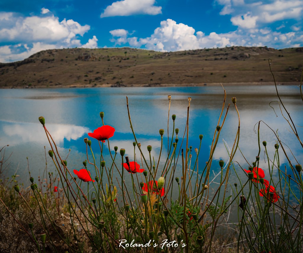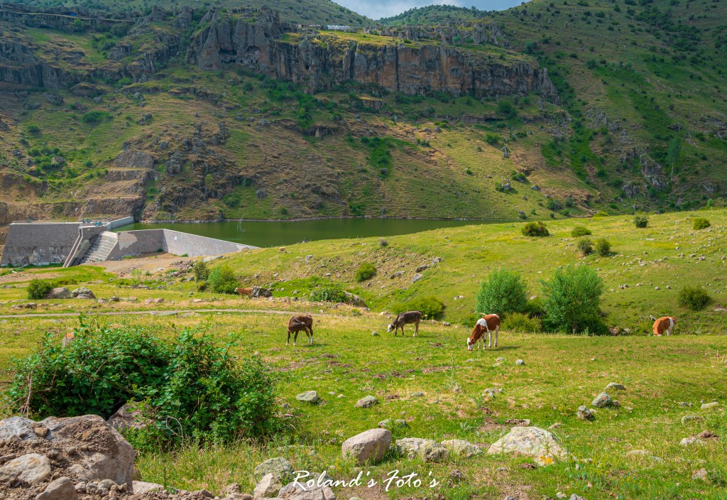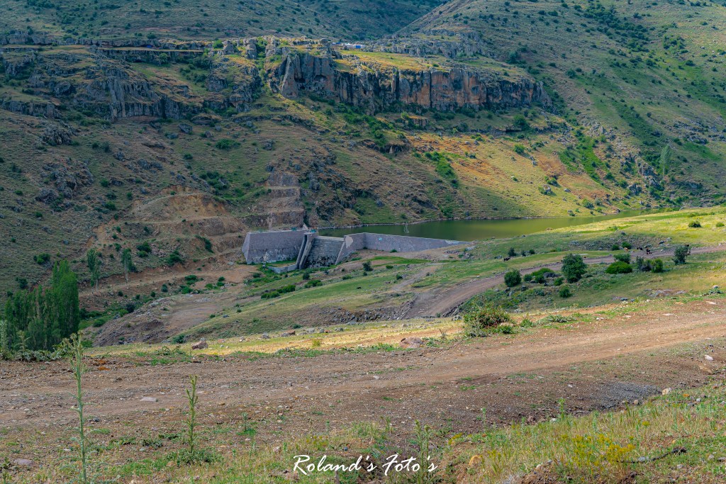 De weervoorspelling van gisteren was niet best. Storm, onweer en regen. De laatste stuiptrekkingen want binnen ene paar dagen stijgt de temperatuur door naar boven de 30. Maar goed, Selma en ik wilde weer op een foto-avontuur. Kenan voelde zich niet helemaal 100 punten. En daarom wilde we graag in de buurt blijven, zodat als de juf zou bellen we snel Kenan konden ophalen. Nu blijkt hier in de buurt (op minder dan een half uur rijden) een gebied te zijn waar heel veel grotten zijn. Daar wilde ik wel een kijkje nemen. Omdat het de nacht ervoor best geregend had, en als je de bergen in gaat dan houd gauw het asfalt op en veranderen de wegen in zandweggetjes. Dus dat was nog even afwachten hoe begaanbaar de wegen zouden zijn. Maar dat viel gelukkig mee. Na we door wat kleine dorpjes reden we echt de bergen in. En wouw, wat was het daar mooi. Alleen was alles daar zo nat dat naar de grotten toe klimmen nog even geen optie was. Als extra bonus vonden we weer een klein, niet meer in gebruik zijnde stuwmeertje. Toen we dit zo stonden te aanschouwen werden we aangesproken door een alleraardigste man die vroeg of alles oké was, of dat we misschien wat hulp nodig hadden. We raakte met de man in gesprek en hij bleek de voormalig Muhtar te zijn van Ortapinar. Dat is een klein dorpje daar in de buurt. Hij vertelde ons dat hij in zijn actieve periode druk was geweest om te proberen het gebied te ontwikkelen. Het is namelijk zo een mooi gebied, dat wilde hij graag delen met de wereld. Maar, omdat al zijn dorpsgenoten hun inkomsten hebben uit de veeteelt kreeg hij niet echt de handen op elkaar voor zijn plannen. Namelijk op het moment dat hij het gebied verder zou ontwikkelen zou dit ten koste gaan van grond die anders ingezet zou worden voor de veeteelt. En toen hij hoorde dat ik een Yabancı ben had hij eindelijk weer eens een gewillig oor om tegen te klagen. (ook al snapte ik geen woord van wat hij zei hahaha).