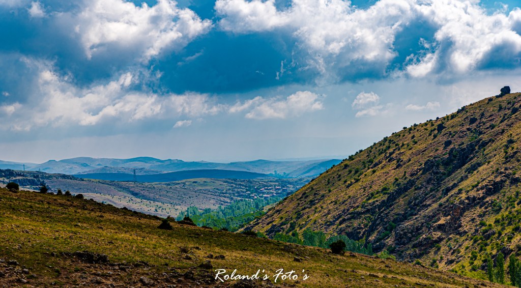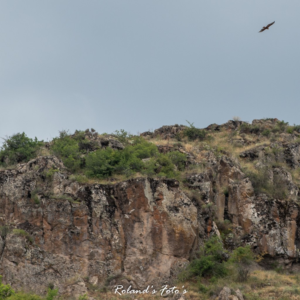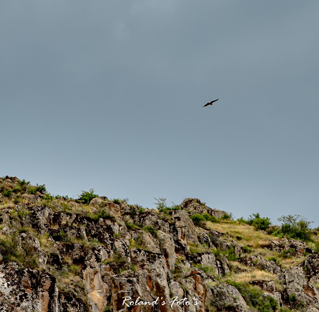 Nog meer tevreden klom ik weer naar boven alwaar m’n meisje redelijk ongerust stond te wachten. Die had me de bossen ‘in zien rennen’ en kreeg vervolgens geen contact meer met mij. Ook omdat ik m’n telefoon in de auto had laten liggen. Maar goed, ik was er weer. En we reden rustig verder, weer richting Şuhut. Was het toen klaar met het fotograferen? Nou nee, niet echt. Ineens zag ik twee roofvogels in de lucht. Ik heb geprobeerd ze te fotograferen maar dat lukte niet echt. Ik had de verkeerde lens op m’n camera (de 28 – 75mm van Tamron) Nu heb ik wel een 70 – 300mm maar die is kwalitatief van dien aard dat je die kan gebruiken om vogeltjes op de foto te zetten.