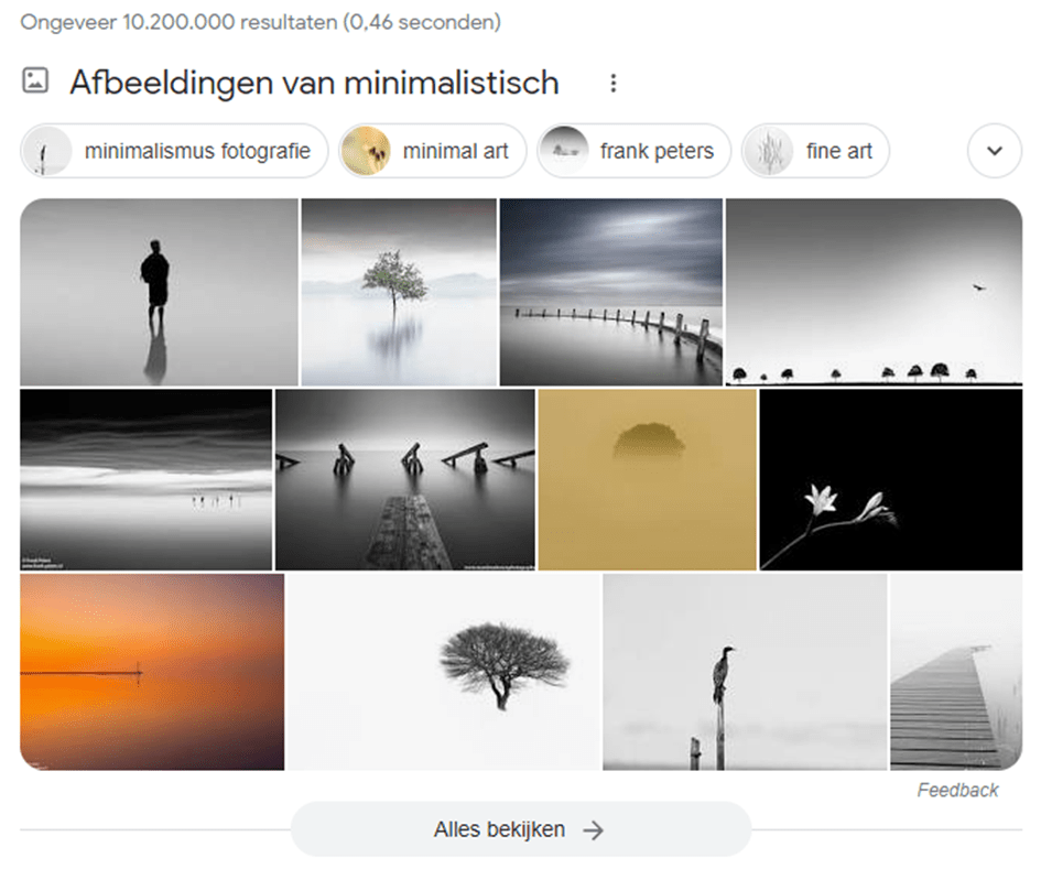 Minimalisme is het fotograferen van niets, althans bijna niets. Meestal ligt de focus op slechts één onderwerp. Door de zogeheten negatieve ruimte eromheen, wordt het beeld gereduceerd tot de essentie. Afleiding vermijden waardoor alleen het belangrijkste overblijft.