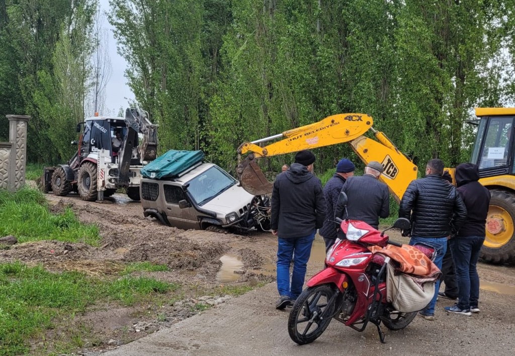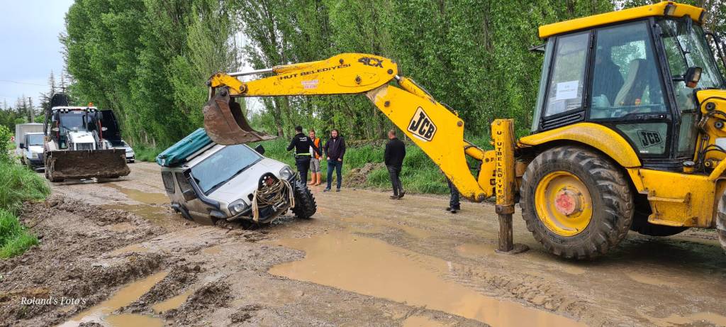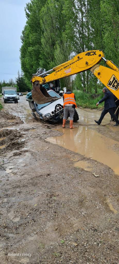 [klik maar eens op de foto’s voor het beste beeld] Maar goed, ondanks dat het gisteren zaterdag was en hier in Turkije ze eigenlijk 7×24 werken werken ze bij Aksa Doğalgaz niet op zaterdag en was het erg lastig om de aannemer de bereiken. Want door alle hulppogingen was het al snel duidelijk dat er zwaar materieel nodig was om ‘het slachtoffer’ weer op weg te helpen.