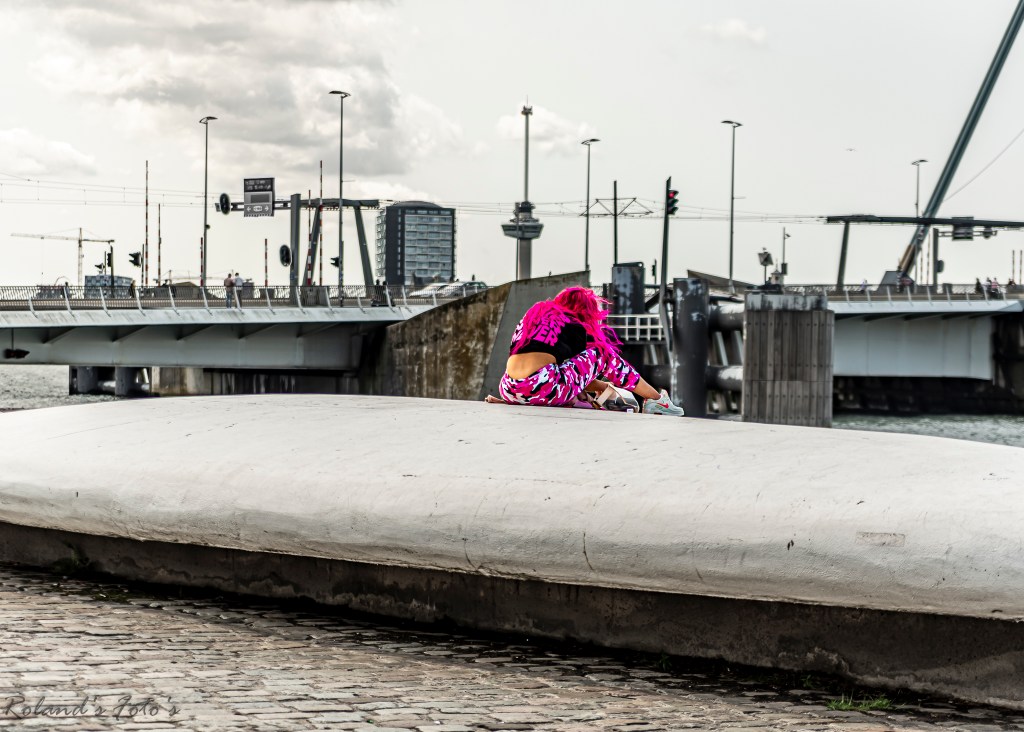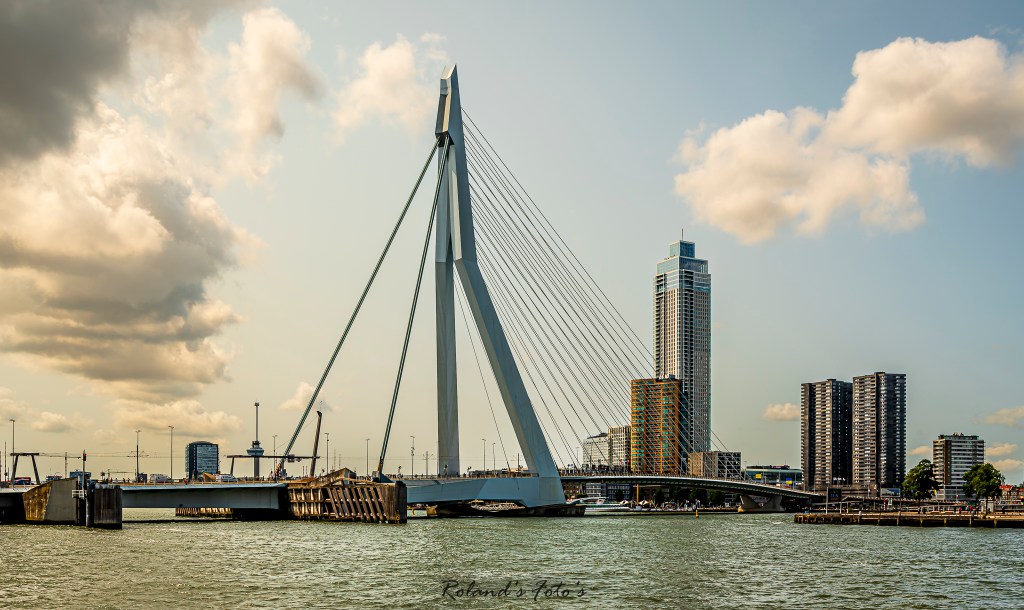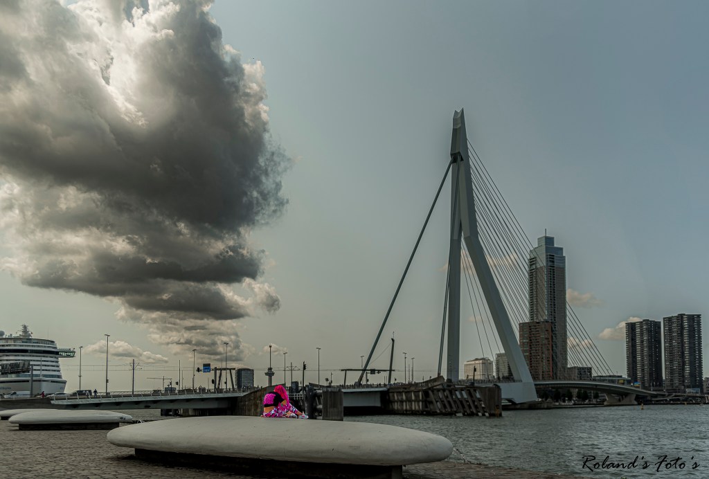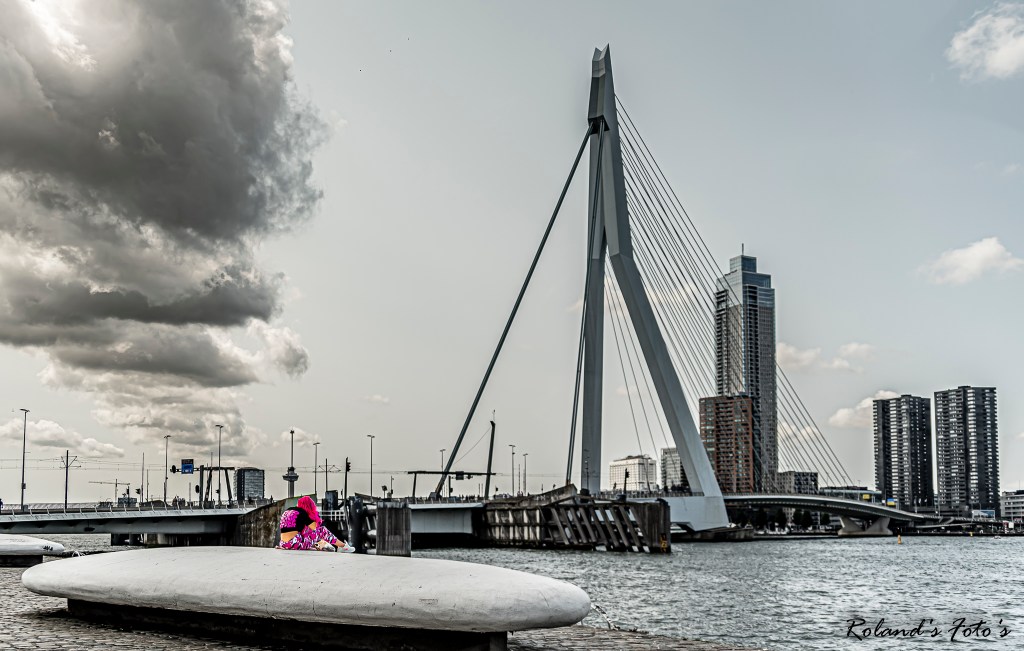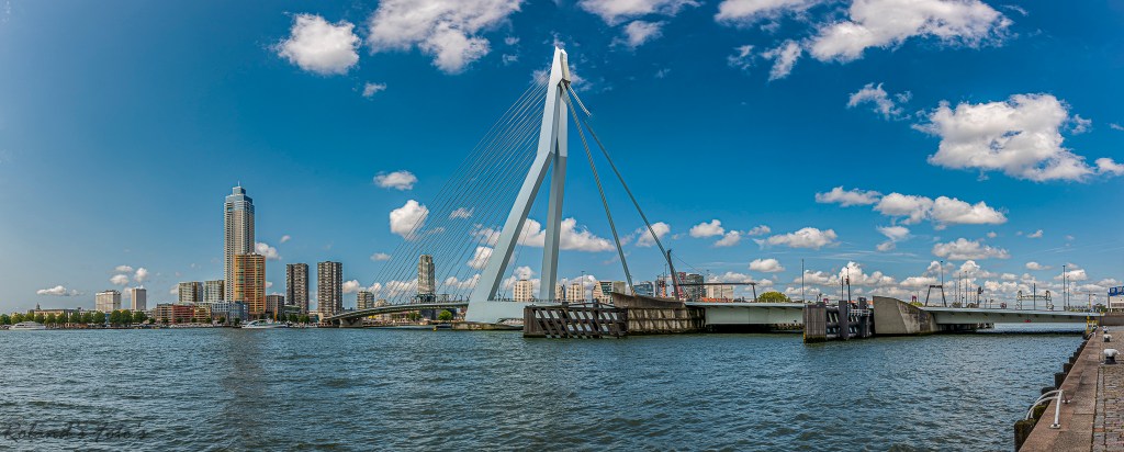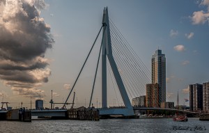 Dus toen we Kenan naar opa en oma hadden gebracht zijn wij naar Rotterdam gereden. We zijn begonnen bij het Erasmus ziekenhuis en daarnaar wilde ik, onder het motto van ‘nu we er toch zijn’ foto’s maken van de Erasmusbrug. Het zullen niet de beste en de mooiste foto’s zijn geworden. Maar ik was tevreden. Ik had nog even geprobeerd contact te zoeken met Mischa van HeelHollandFotografeert. Ik ken hem via de vele Foto7Weekse die ik heb gevolgd welke door hem worden gefaciliteerd. En hij faciliteerd ook het 3×50 programma waar ik momenteel aan deel neem. Maar goed, ik kreeg helaas geen contact want…. hij was namelijk ook op ‘De Kop van Zuid’. Maar goed, dat wisten we helaas niet van elkaar.