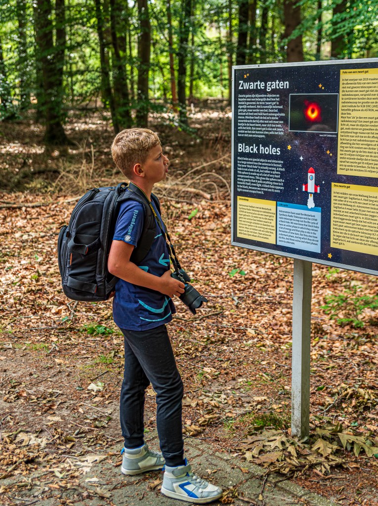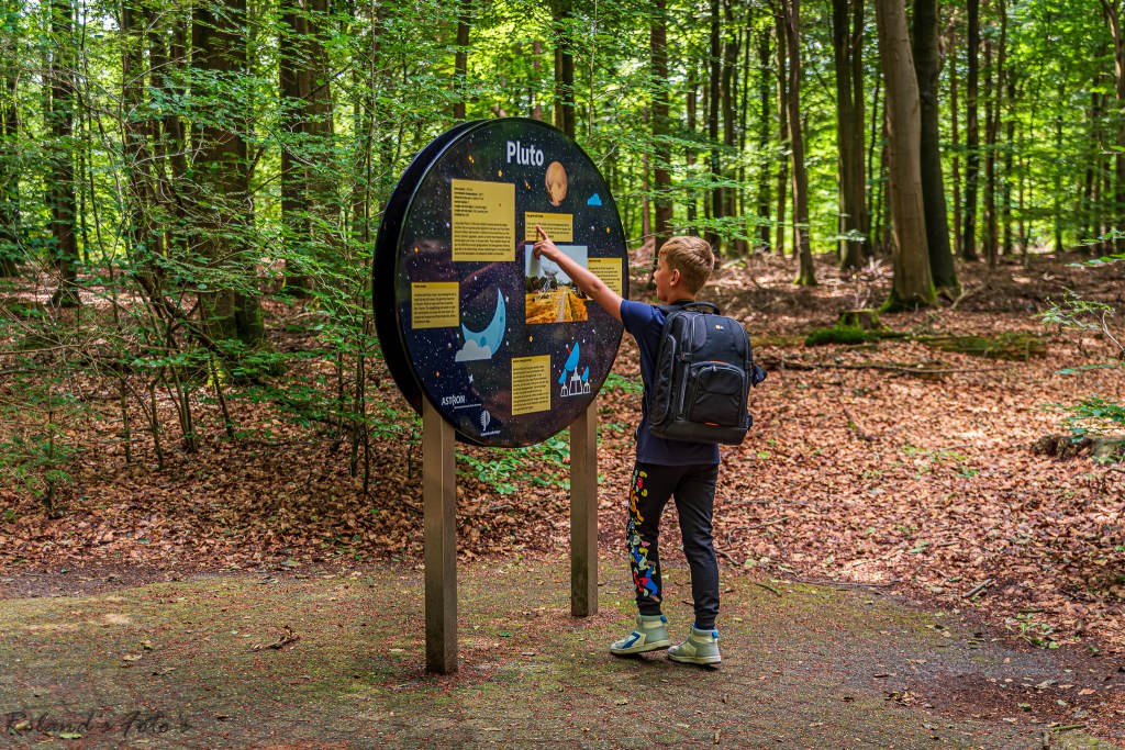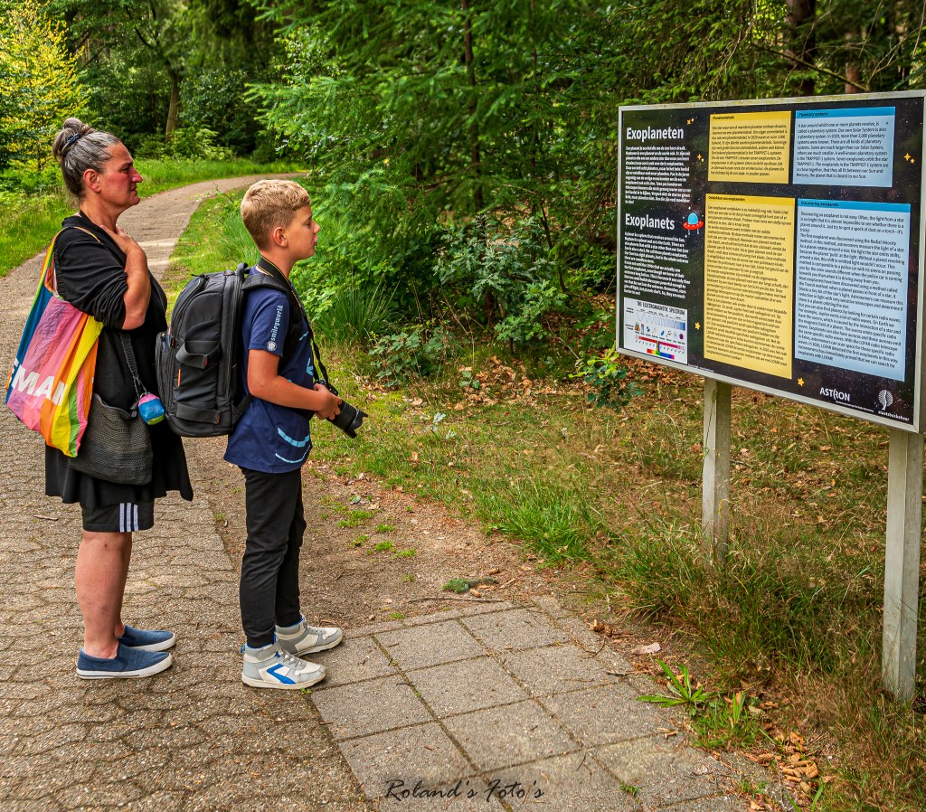 Zo, en toen waren we al weer aangekomen bij maandag 17 juli. De laatste week van onze vakantie in Nederland was al weer ingegaan. Maandag 24 juli vliegen we immers al weer terug naar het warme Turkije. Wat staat er vandaag op de planning? Nu waren we al bij het Herinneringscentrum Kamp Westerbork geweest, maar daarnaast ligt een heel leuk wandelpad. Helemaal leuk omdat Kenan mega is geïnteresseerd in de Ruimte en alles wat daar mee van doen heeft. Wandelroute Melkwegpad. Naast het kampterrein staan 14 losse parabolische antennes in het bos. Samen vormen ze De Westerbork Synthese Radio Telescoop ( WSRT). Via het Melkwegpad, met goed begrijpelijke uitleg over planeten, wandel je naar het kampterrein en de radiotelescopen. Terug loop je via het Bospad en langs het prachtige Hingsteveen. Of je kan met de bus terug naar het begin. De wandeling neemt ongeveer 1,5 uur en is ook goed te doen voor mensen die wat minder goed ter been zijn.