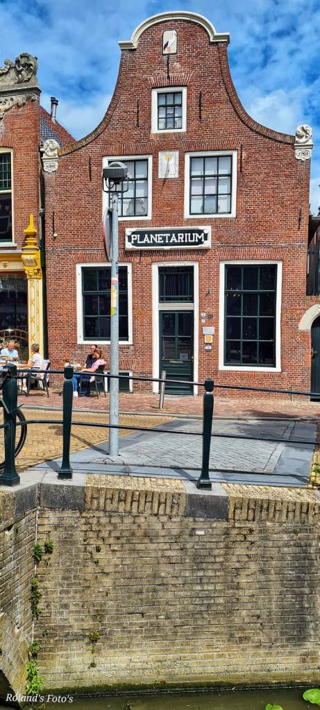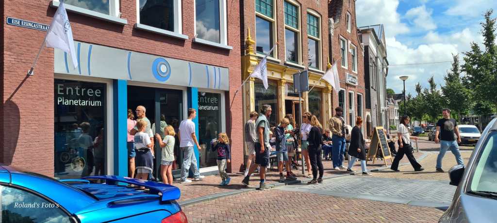 Woensdag 19 juli. Onze geplande Friesland-dag. We wilden eigenlijk naar én het Kameleon-dorp in Terherne én naar het Planetarium in Franeker van Eise Eisinga. Maar na wat speurwerk op internet kwamen we er achter dat als je naar het Kameleon-dorp in Terherne wil, dan moet je toch echt wel een hele dag daar voor uit trekken. En gezien het weer weinig goeds voorspelde hebben we besloten om dat een volgende keer als we in Nederland zijn te doen. Dus we zijn begonnen in Franeker. Dat was vanaf de camping toch stiekum zo’n 5 kwartier a anderhalf uur rijden. Pfff best een eind zeg maar. Toen we daar aankwamen konden we de auto voor de deur kwijt. Maar het museum is best klein. Dus er stond een rij tot buiten het museum. Nou ja, niet voor niets zo’n eind gereden. Dus toen we aan de beurt waren hoorde we dat het museum (weer) vol was. Dus we hebben maar een kaart gereserveerd voor later die dag en we zijn eerst maar een broodje gaan eten. Recht tegenover het museum, aan de andere kant van de brug was er een banket bakkerij waar je ook even kon zitten. Banketbakkerij De Korenbloem. Pfff dat was een des-illusie…. we wilde alle drie graag een broodje bestellen en er leek verder niemand in de winkel. Dus we wachtte even tot de dame in kwestie die achter de balie stond klaar was met haar activiteiten. Toen ze klaar was begon Selma met doorgeven met wat zij graag wilde. Op dat moment komt er een dame binnen en die begint gelijk wat te brabbelen (ik vermoed in het fries) en wat denk je…. zonder enig commentaar werd die dame eerst geholpen. Belachelijk!! Uiteraard heb ik daar in heel duidelijk Nederlands mijn mening over gegeven. Ze keken me aan alsof ik Turks sprak. Nou, ik denk dat dat meer soelaas had geboden. En wat denk je…. het broodje was niet te eten. Bah!