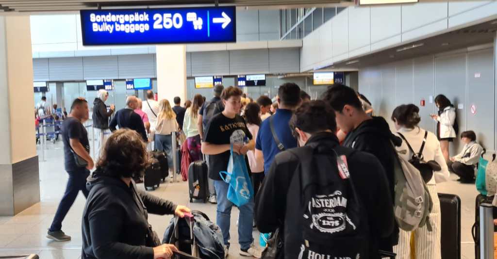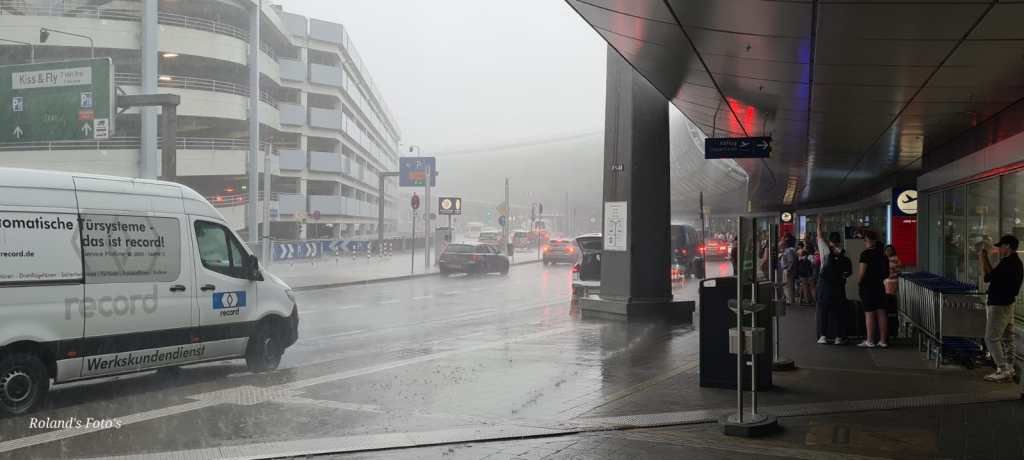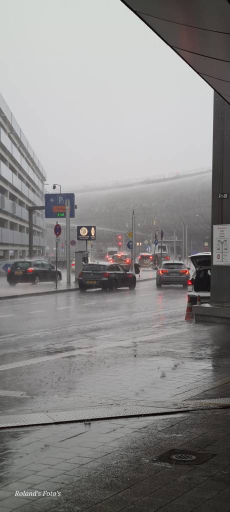 En dan is het toch echt maandag 24 juli. De dag dat wij weer naar huis vertrekken, de dag dat wij weer naar Turkije vliegen. We hoefde gelukkig niet heel erg vroeg op aangezien we redelijk laat zouden vliegen. Na een laatste check of we echt alles hebben ingeladen reden we naar Assen om opa en oma een laatste knuffel te geven en om de sleutel achter te laten. En toen door naar Düsseldorf. Ik moet zeggen, voor een maandag was het wel druk maar we konden overal doorrijden. Auto aftanken en inleveren dat hok. Pfff het was wel een nieuwe auto en hij zag er netjes uit. Maar errug klein, anders dan ons beloofd was. Maar goed, het voldeed. Toen we uit de parkeergarage liepen begon het net een beetje te druppelen. Maar toen….. pffff er brak een bui los, niet normaal. Een echte wolkbreuk. Kijk maar eens op de foto’s, de vertrekhal was gewoon vertrokken.