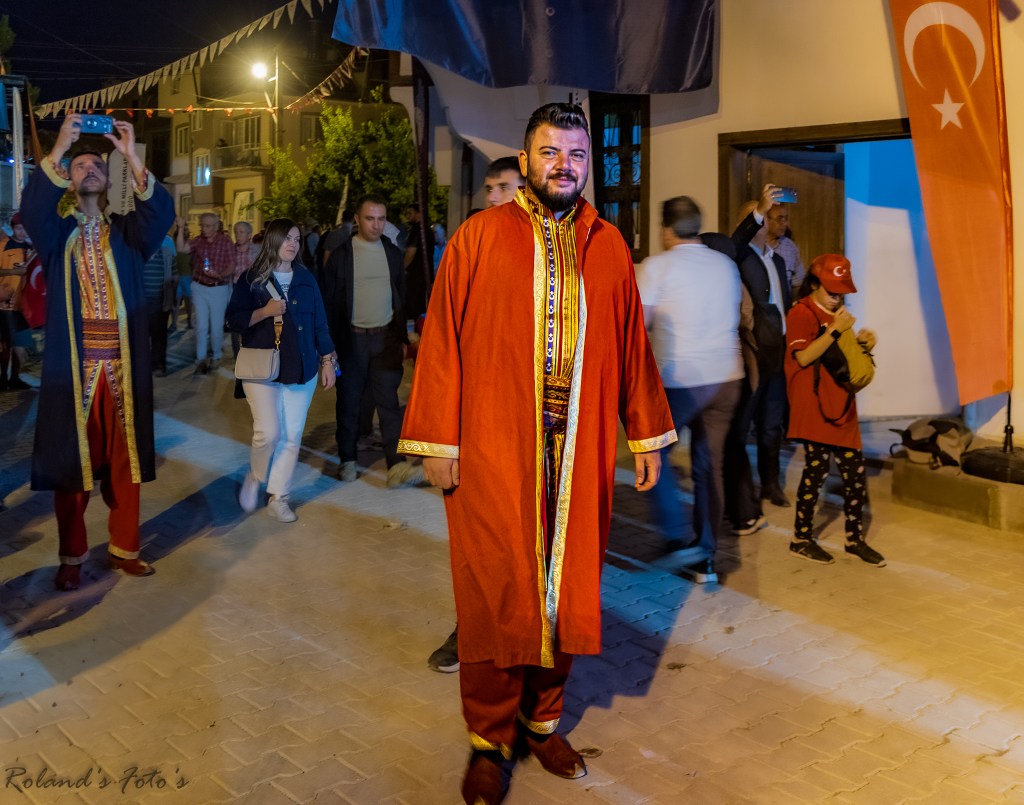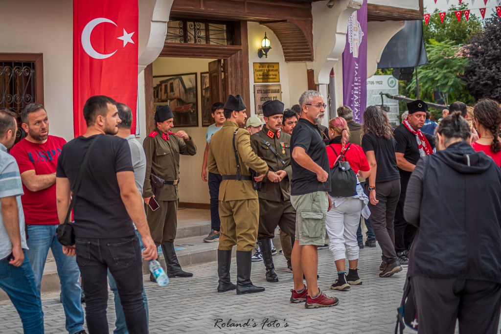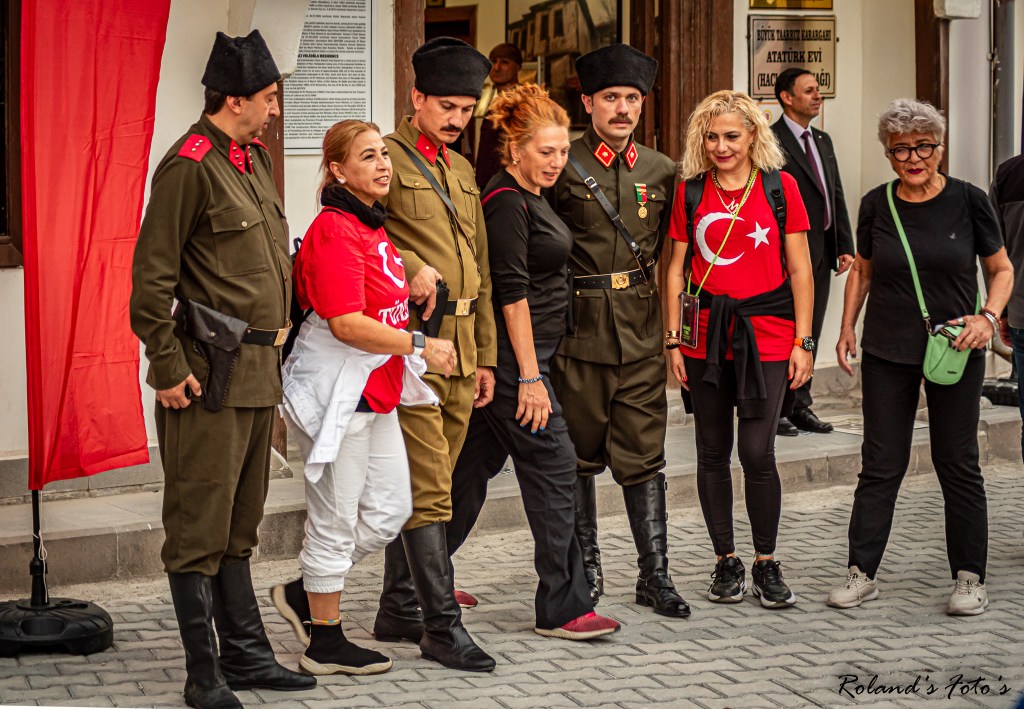 En zoals we dat in Turkije doen, dat wordt groots gevierd. Dertig augustus is het officiële einde van de oorlog. En 26 augustus is Afyon bevrijd. En dat wordt dan de gehele week gevierd. Zeg maar een soort van ‘Bevrijdings Week’ En die wordt hier afgesloten met een wandeltocht. Ze starten hier in Suhut bij het Ataturk huis en lopen dat de zelfde tocht als Ataturk heeft gelopen met zijn mannen, op weg naar de overwinning. Het is een tocht van 14 kilometer die om middernacht begint. Als je aan het einde komt wordt je met de bus terug gebracht.