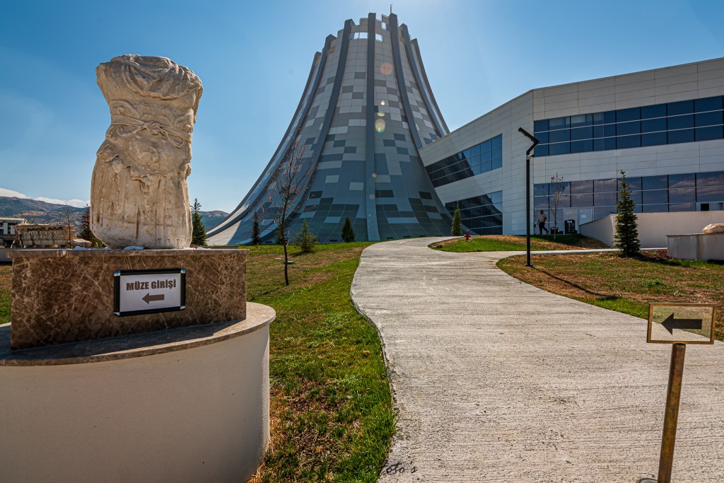 Uiteindelijk kwamen we er achter… het gebouw was al klaar en dit was gewoon het ontwerp hahaha. Het was alleen nog niet in gebruik genomen. Wat voor gebouw het is? Het is een Oudheidkundig Museum over de geschiedenis van de regio. Alles wat wordt opgegraven in de regio vind je hier terug. Dus buiten dat ik van dit gebouw een foto wilde maken, wilde we ook binnen een kijkje nemen.