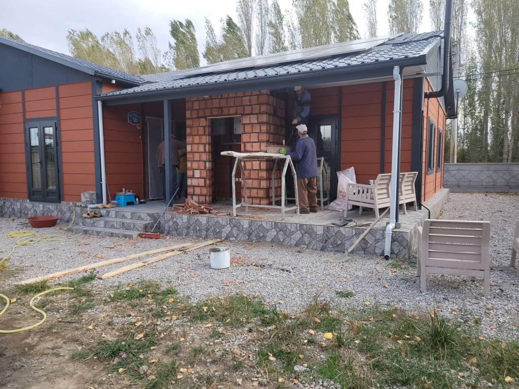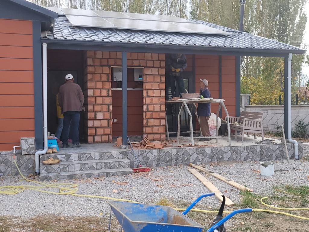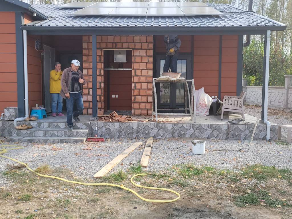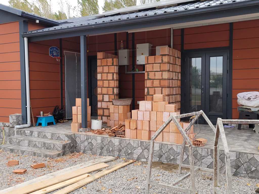Het is een kast van 2 meter breed en 80 cm diep. Ja, jammer van de ruimte. Gelukkig is onze veranda groot zat (20 m2), dus we houden zat ruimte over. Op advies van de bouwvakker laten we het over de winter rusten en dan in de lente kunnen we het laten stucen om het vervolgens te laten verven in de kleur van het huis. En wat kost dat stucen? De nieuwe meterkast én onze schuur (7 meter bij 3 meter en 2,5 meter hoog) strak in de stuc zetten voor ₺ 5000 (€ 165). Als ik kijk hoe netjes en waterpas hij werkt…. ik denk dat we maar contact moeten houden met deze man.