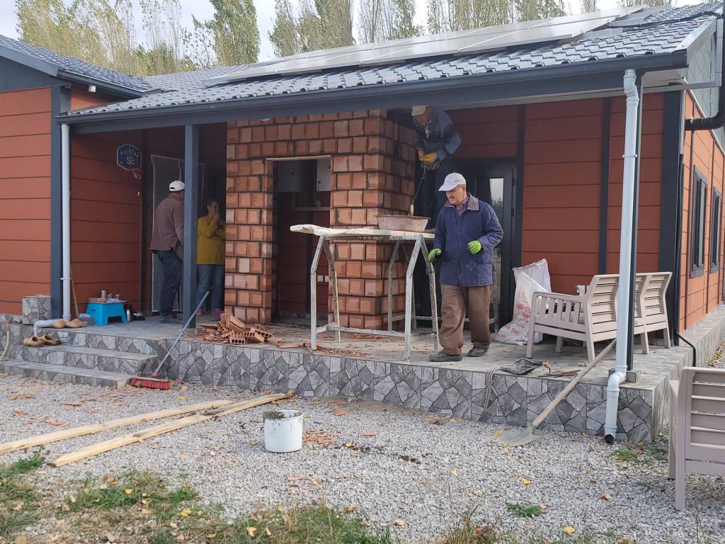 Maar goed, je kan dwars gaan liggen of je kan proactief op zoek naar een oplossing. Oh ja, we moesten wel zorgen voor een goede beluchting omdat die dingen best warm kunnen worden. Dus de timmerman maar gebeld en gevraagd wat het zou kosten als hij een houten kast zou bouwen. Dan kunnen we daar bijvoorbeeld ook onze klompen in stoppen etc onder het motto van de nood een deugd maken. Hout is goud…. ook hier. Dus een houten kast kost ons ₺ 15.000 (een kleine € 500) Pffff…. wat een geld voor een kast die ik niet wil. Andere oplossingen dan? De timmerman kende wel iemand die het in plastic kan doen. Heb je ook geen problemen met regen en sneeuw. Kosten: ₺ 17.000 (ruim € 560) Duzzzzz…. plastic werd het dus zéker niet. Toen opperde ik of het niet kon met stenen muren. Heb je ook geen problemen met regen en sneeuw. Lang verhaal kort…. we hebben een goede bouwvakker gevonden die nog wel tijd had om ons op hele korte termijn kon helpen. Hij doet het samen met de timmerman, die een kozijn komt maken om de oude deur van mn schoonouders er in te hangen, voor een totaal bedrag van…… ₺ 5700 (ongeveer €190)