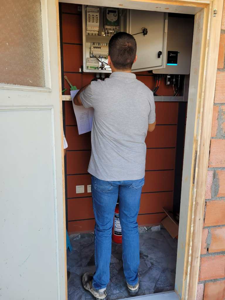 Ze gingen zelfs het dak op om de panelen te controleren. En ook daar vond hij een afkeur punt. Alle kabel zijn voorzien van die beschermers… (geen idee hoe je dat noemt) maar 30 centimeter kabel had geen beschermer.