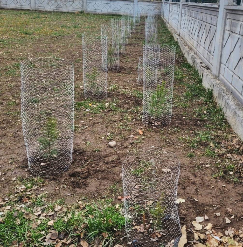 En van Süleyman dayı (een van de ooms van Selma) hadden we wat frambozenstruikjes gekregen. (of waren het nu bramen 🤭) Die hebben we gelijk maar even in de plantenbak geplaatst. En…. ik had nog wat van dat gaas over. Dus dat heb ik gebruik om de jonge aanplant ook in de plantenbak te beschermen.