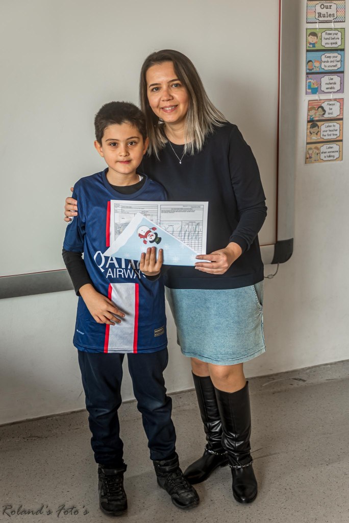 Goed, en door…. Kenan zijn vakantie is begonnen. Hij heeft nu twee weken vrij. En afgelopen vrijdag heeft hij zijn rapport gekregen. En ik vind dat altijd zo leuk. Ze maken daar een hele ceremonie van. Normaal mogen alle vaders en moeders ook komen. Maar op school gaat een griep virus rond. Dus het dwingende advies aan de ouders was om niet te komen. Zo jammer, want dan kregen we geen foto’s. Lang verhaal kort, op verzoek van alle ouders heb ik de juf gevraagd of ik toch mocht komen om foto’s te maken. En juf gaf aan dat als alle ouders akkoord waren, dat ik toch aanwezig mocht zijn om foto’s te maken. Ondanks dat ik me heb toegelegd op landschapsfotografie zijn deze plaatjes toch best aardig gelukt, al zeg ik het zelf. En het belangrijkste, alle papa’s en mama’s waren er ook erg blij mee.