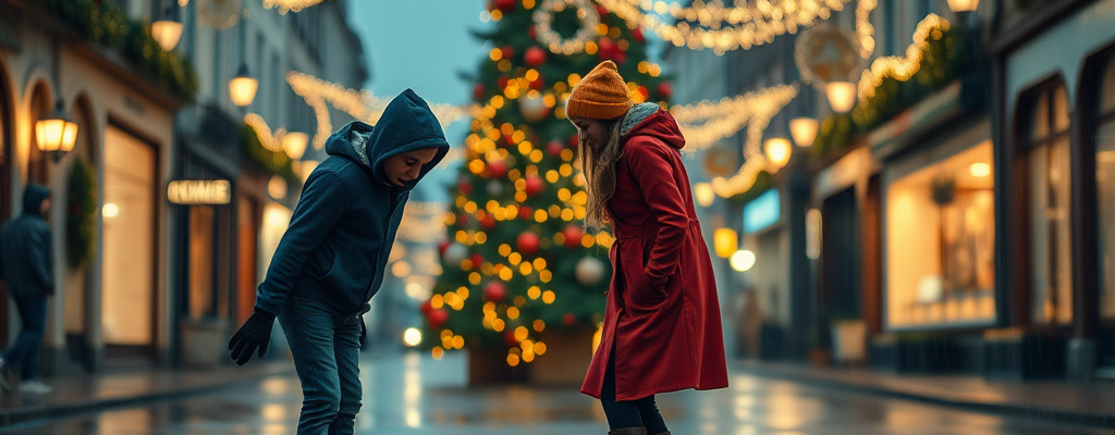 Montluçon, gehuld in een zacht sluier van motregen, leek op een schilderij uit een andere tijd. De Rue Denis Papin, normaal een rustige straat, straalde een warme kerstsfeer uit. Sierlijke lichtslingers waren gespannen tussen de huizen, en een grote kerstboom op het pleintje verlichtte de straat met fonkelende lampjes. De geur van versgebakken baguettes uit de nabijgelegen bakkerij mengde zich met die van natte aarde en kruidige glühwein. Ondanks de regen bleef de magie van kerst voelbaar in elk hoekje van de stad.